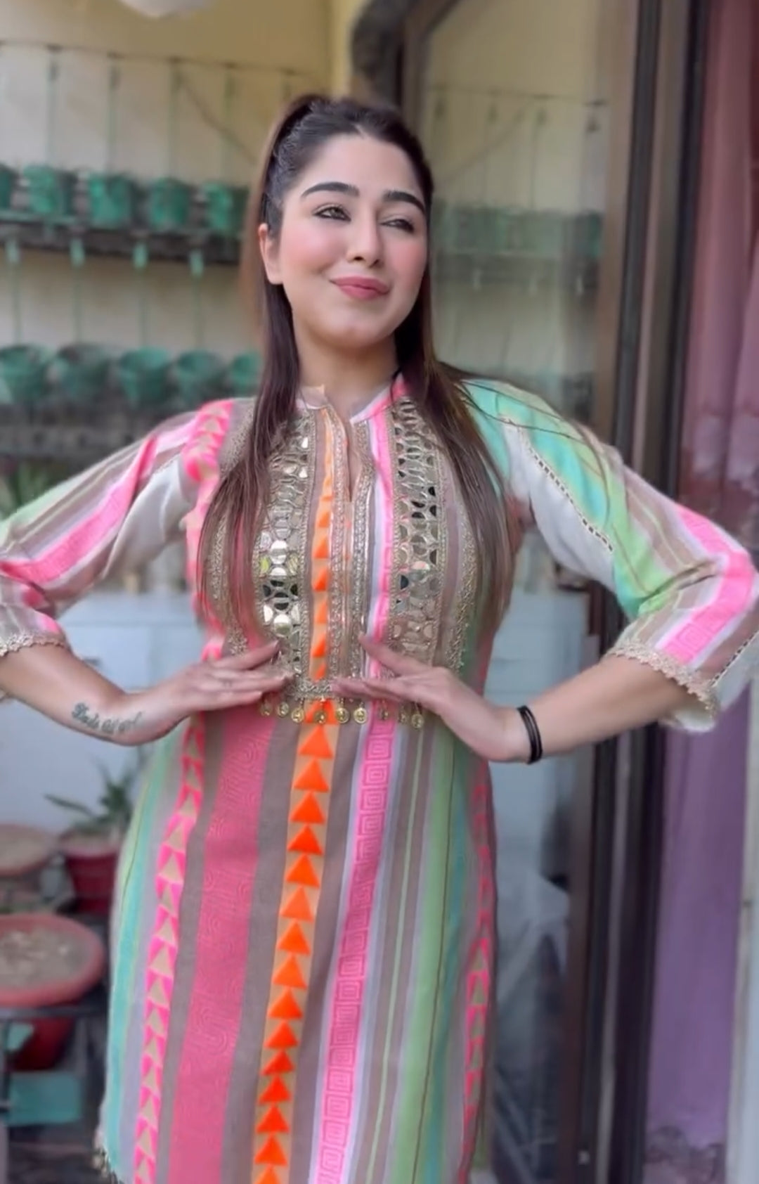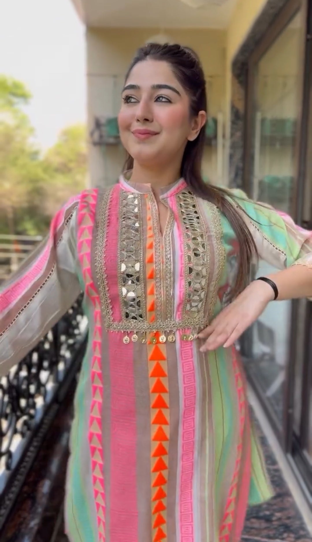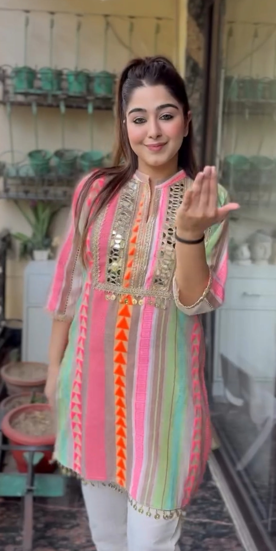 Step into effortless elegance with this pastel mirror-work ethnic wear cordset, perfect for festive outfits, wedding functions, and all kinds of occasion wear. The soft pastel stripes and premium detailing make it a stylish and comfortable wedding outfit alternative for daytime events, brunches, and celebrations.